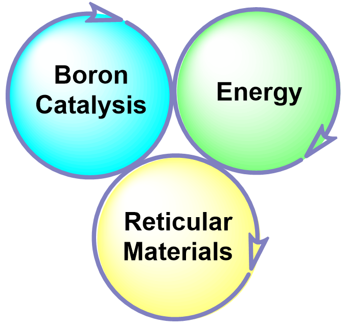 Our research is devoted towards innovative, energy-efficient, and sustainable catalytic systems by rational design and combination of boron catalysis, reticular materials, photochemistry, and electrochemistry. Our initial research efforts will focus on the following aspects: